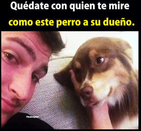 Cuando pasó mi shock emocional, Paty me preguntó ahora que qué era lo que me gustaba y amaba del ex, esa pregunta fue más fácil porque sabía perfecto la respuesta porque siempre se lo dije y se lo repetí al ex infinidad de veces; y de verdad, no se imaginan cómo lo admiraba y amaba. Es muy gracioso porque tenía varias fotos de ambos donde yo lo estaba viendo y admirando como cachorrita feliz viendo a su humano, literal esas fotos son como este meme y en esa relación yo era el perrito, lol, la misma carita ponía en las fotos con el ex.
